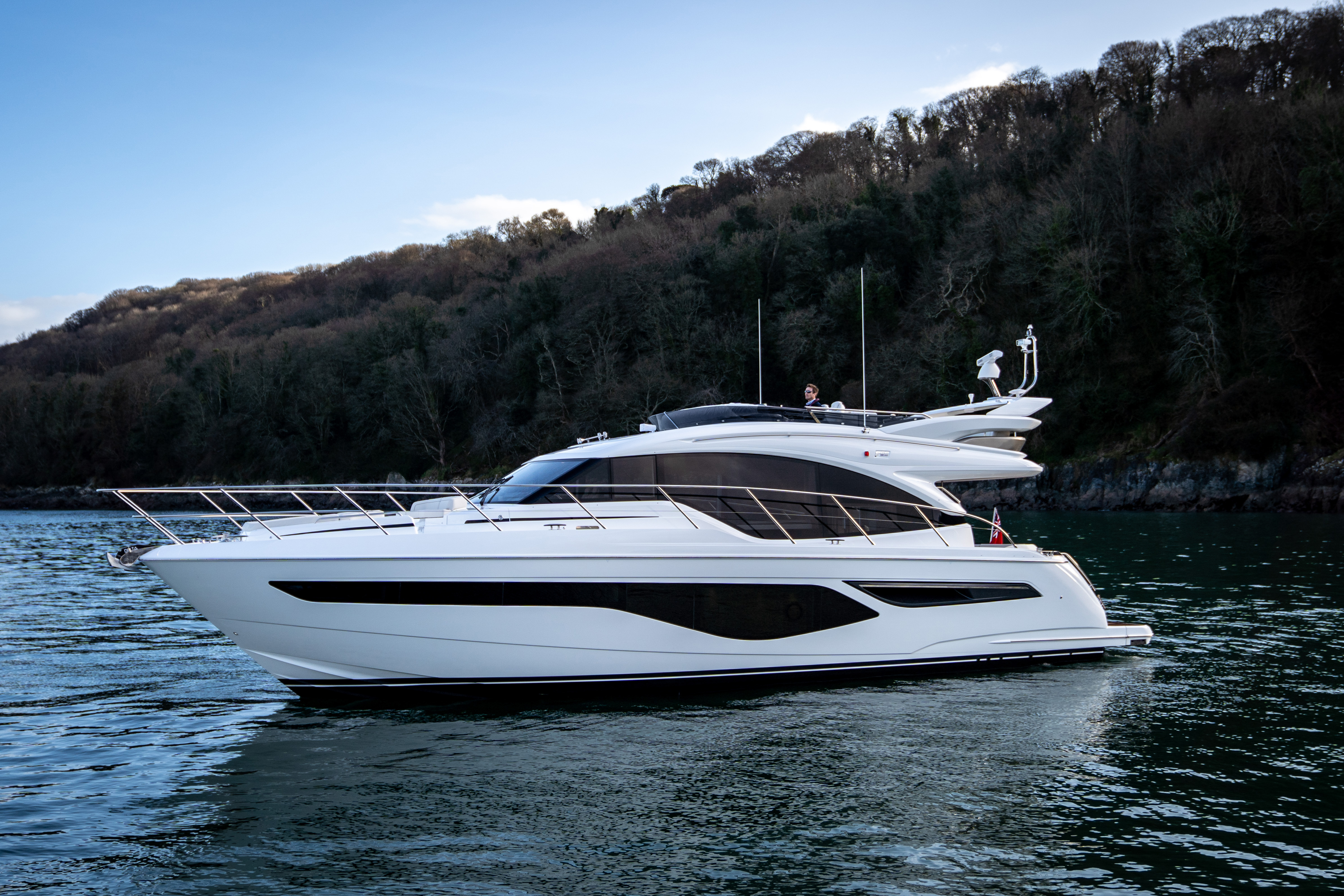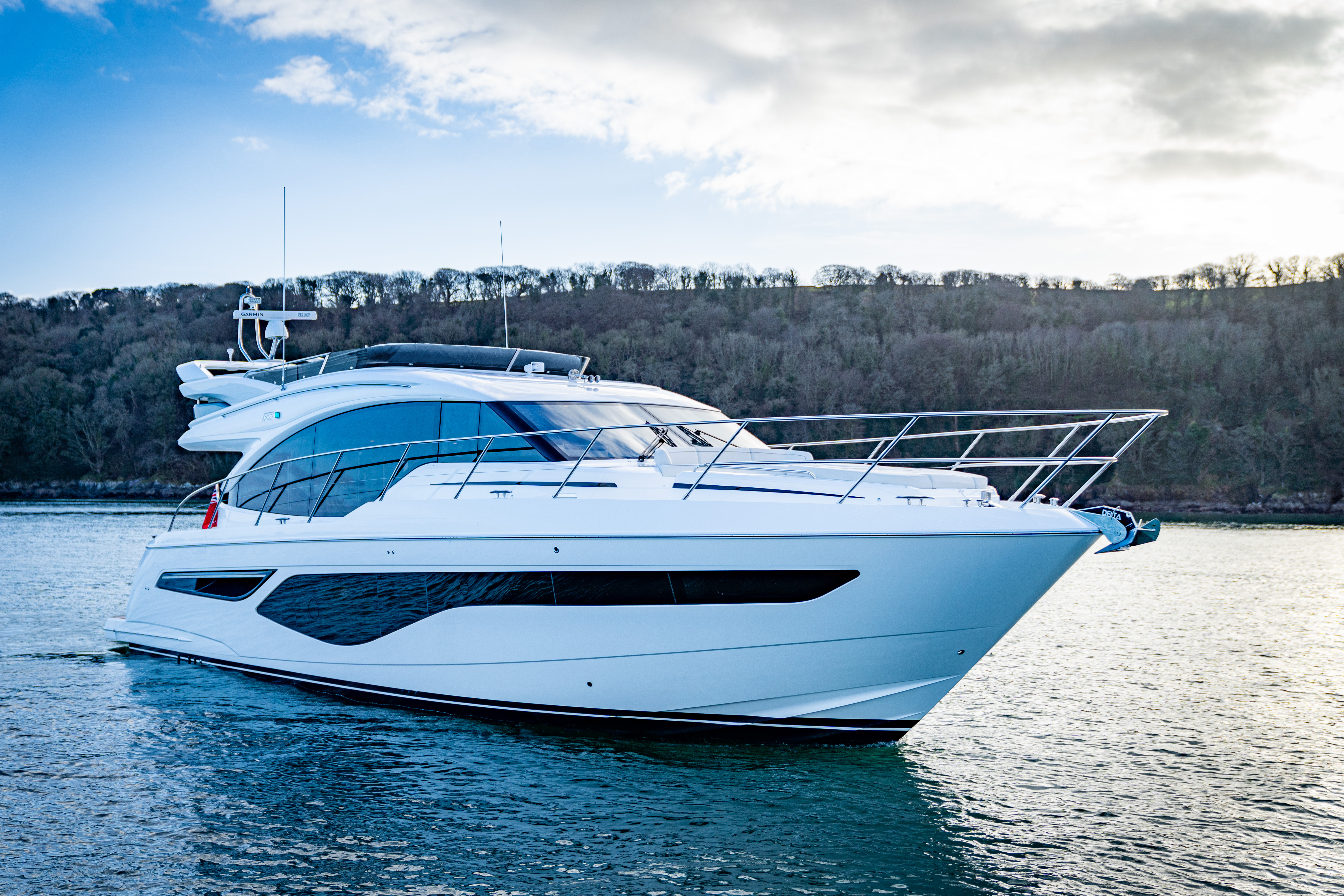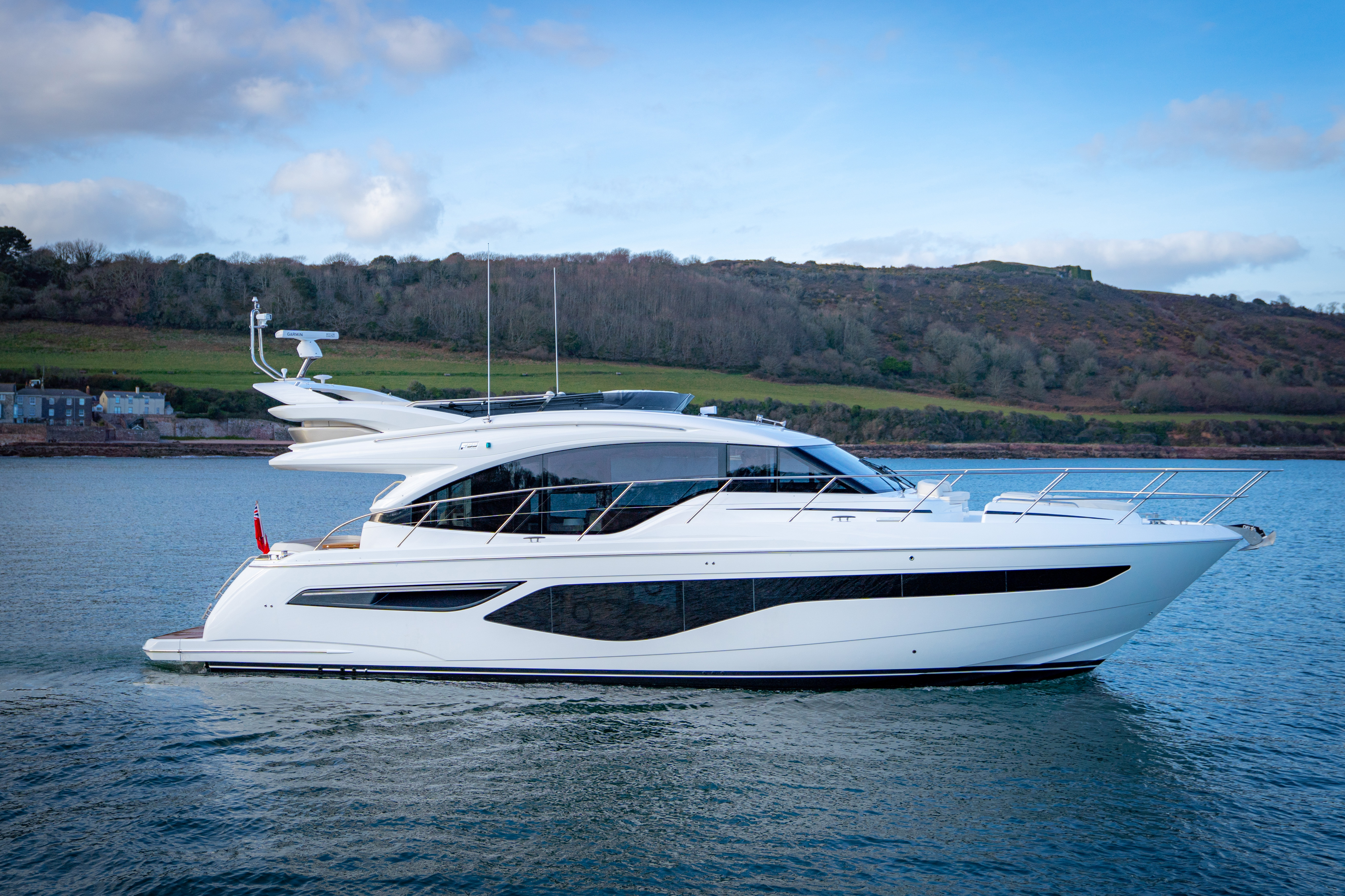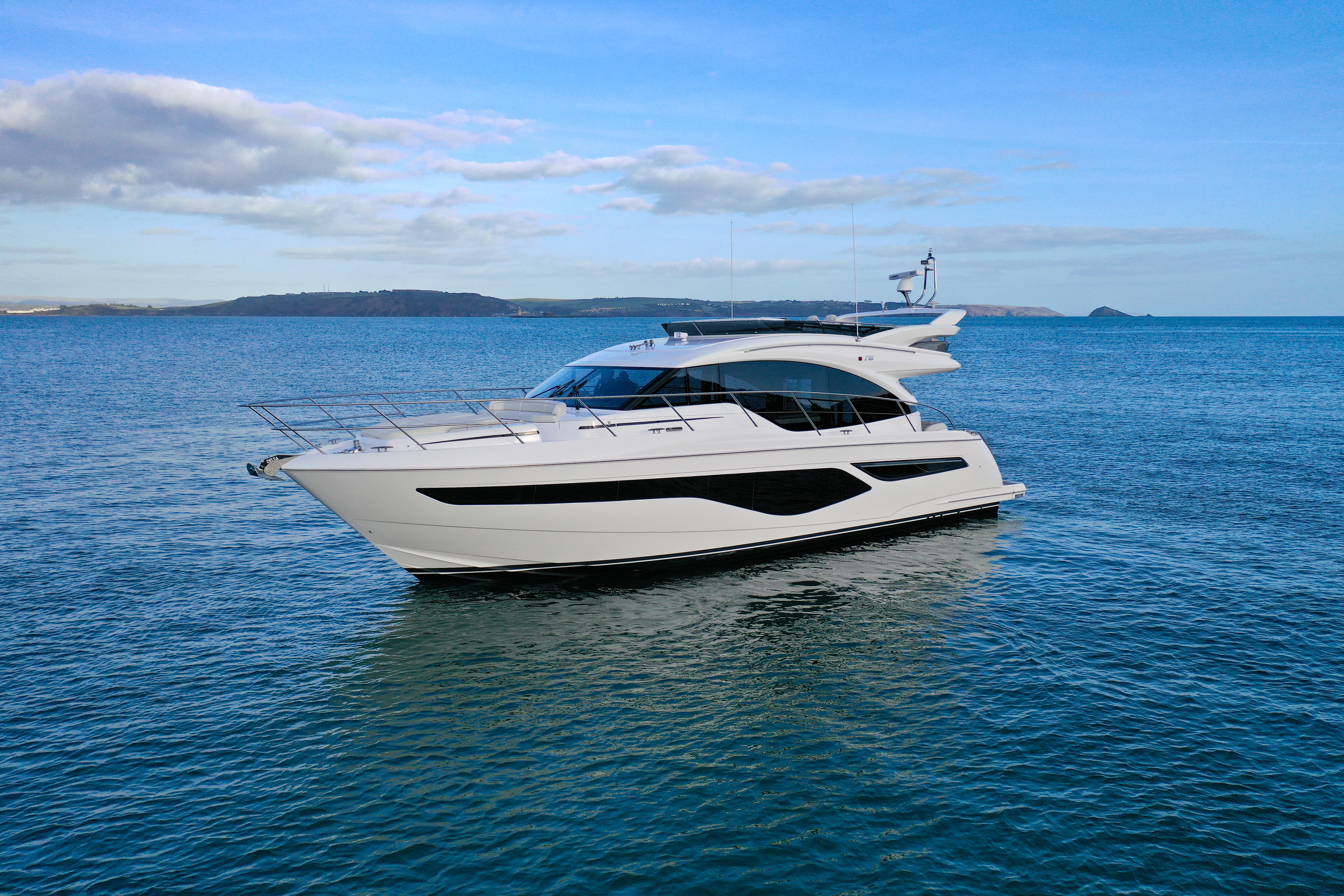 Con un casco de 17,7 m y dos motores Volvo D13-900 que alcanzan velocidades de 33 nudos, el F55 es un yate con puente superior de lujo que ofrece una navegación increíble y dinámica.