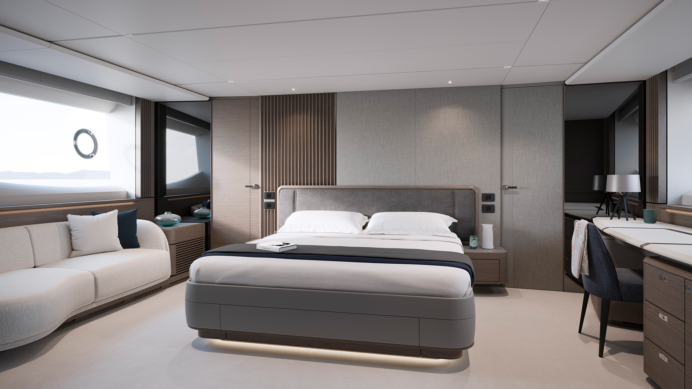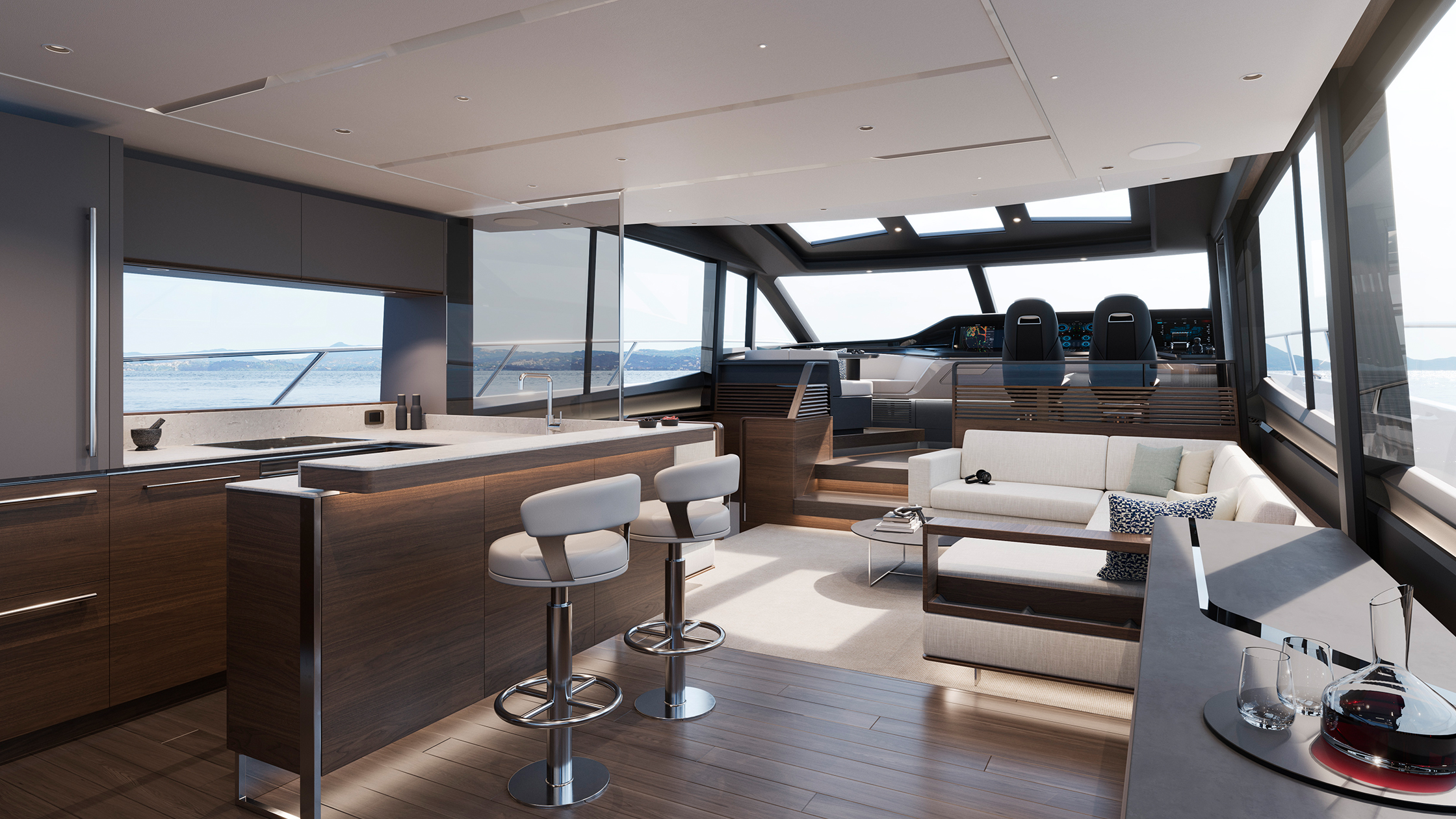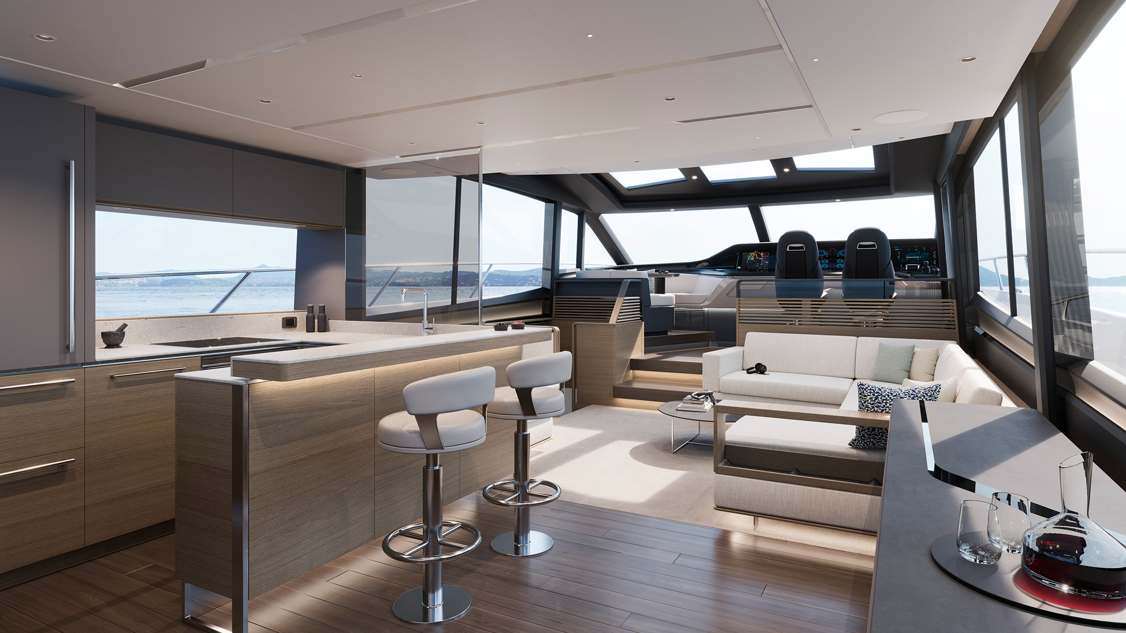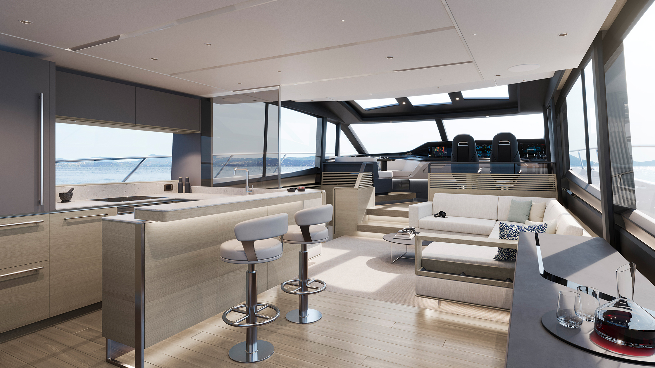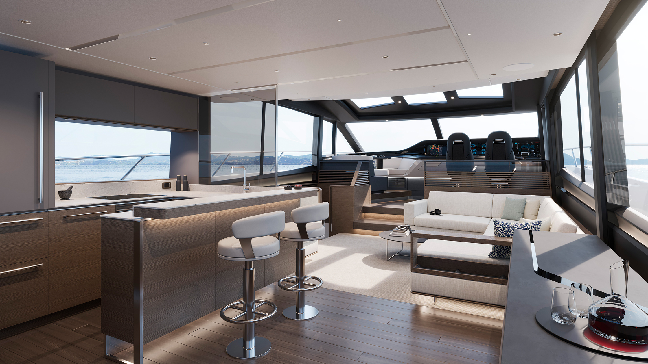 El S80, con inspiración urbana, es una obra de arte con un aire contemporáneo. Con una cubierta principal de un solo nivel y un amplio puente deportivo, los espacios abiertos se combinan con increíbles detalles interiores.