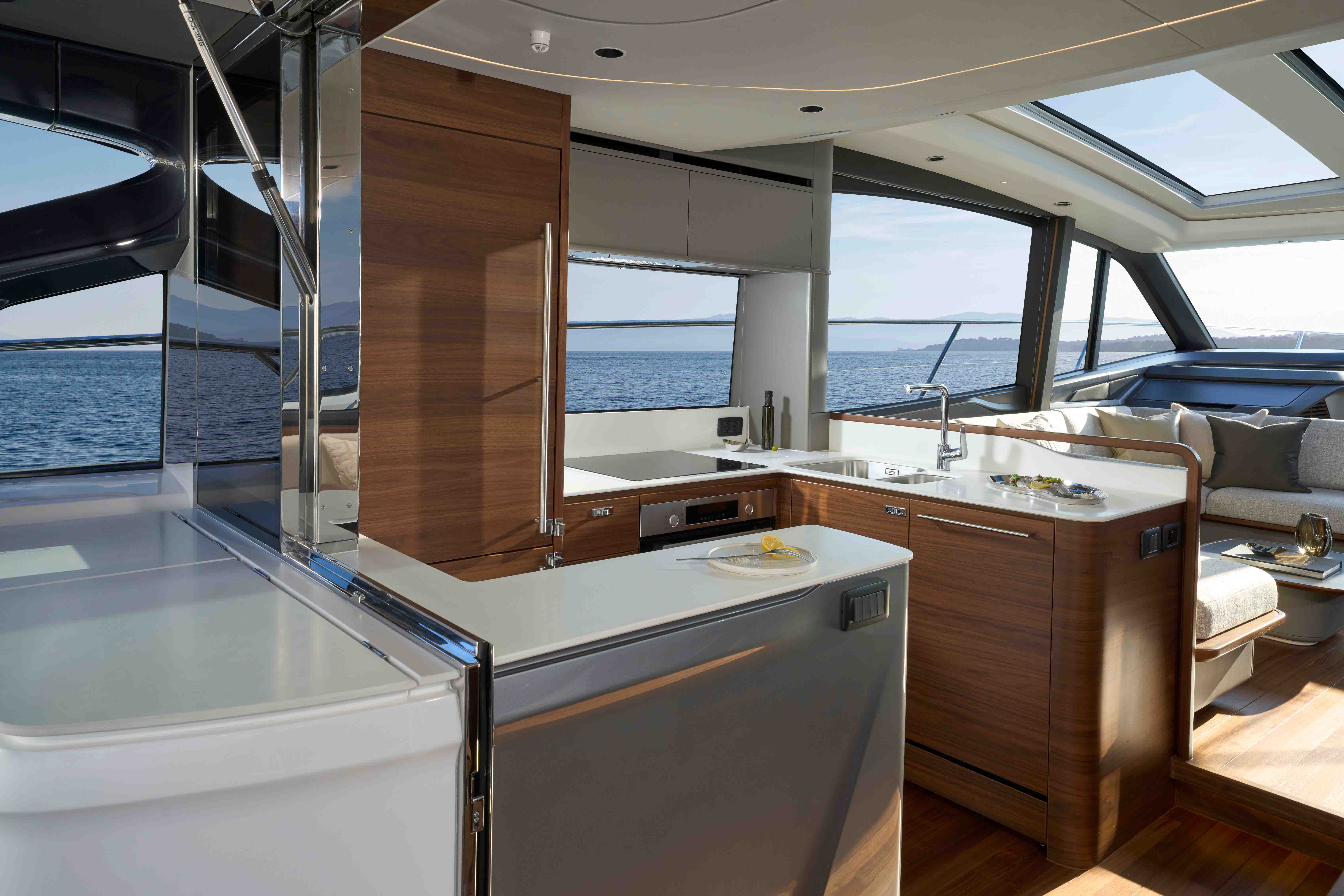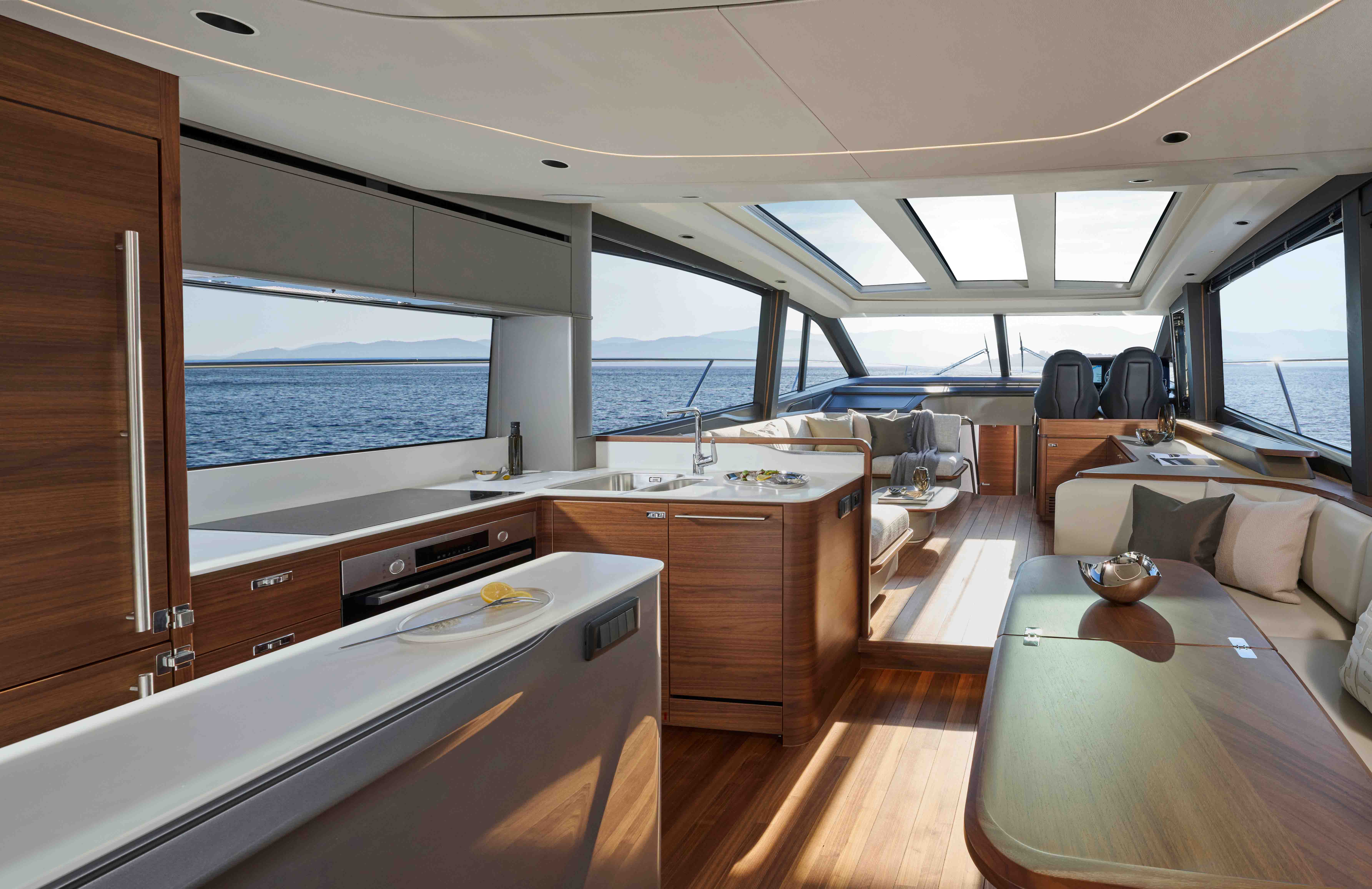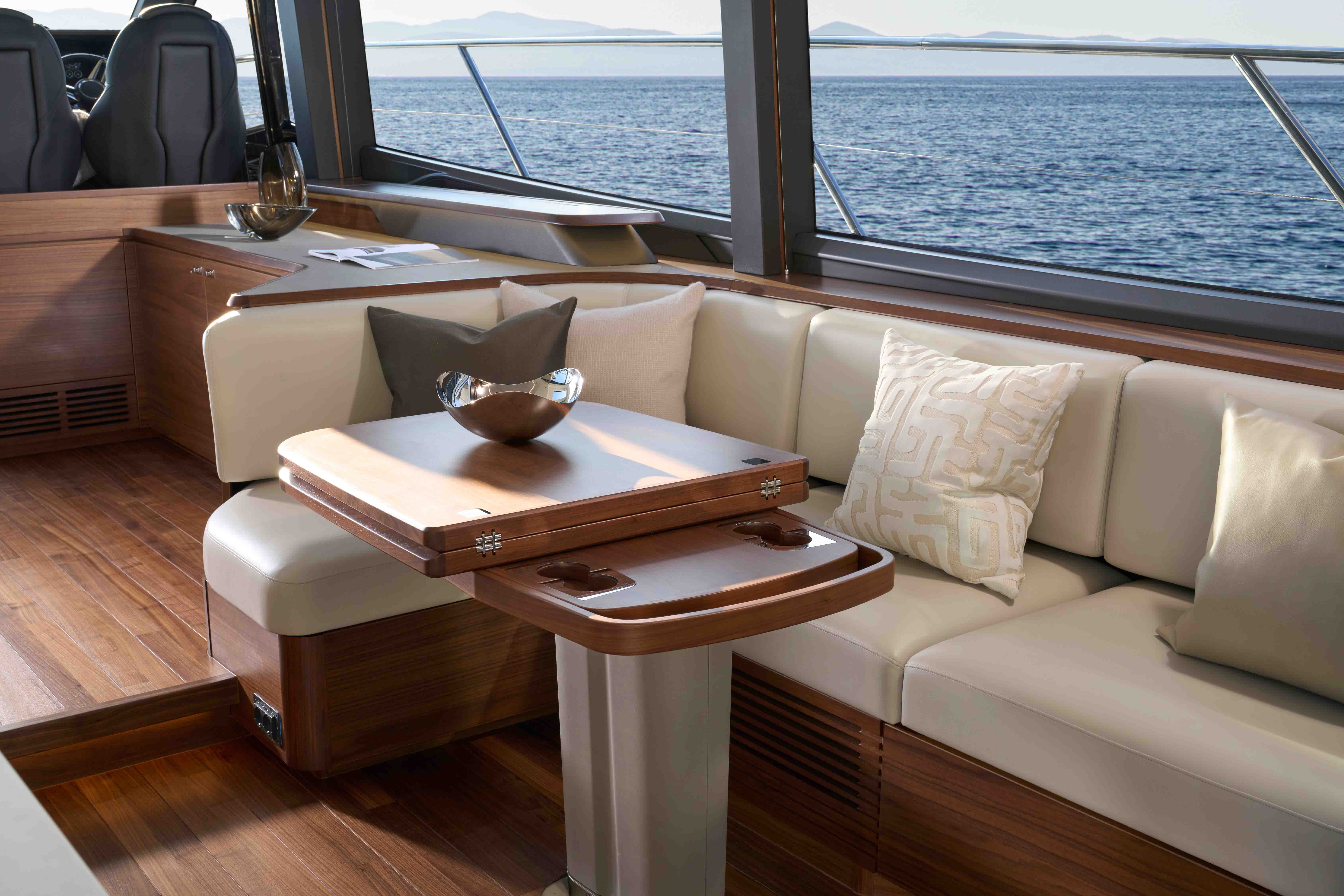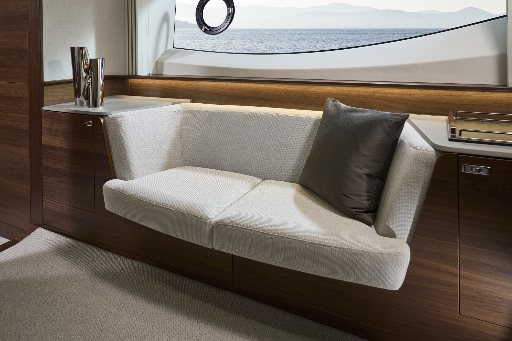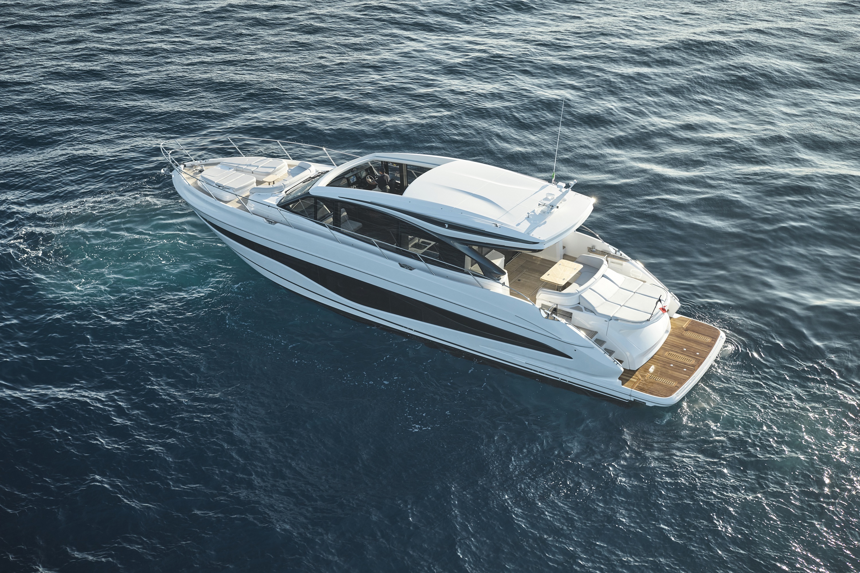 † Las velocidades máximas varían dependiendo de la limpieza del casco, el estado de la estructura de proa, la carga de la embarcación, las temperaturas del agua y el aire, el estado del mar y otros factores. Las estimaciones de velocidad se ofrecen, por tanto, de buena fe pero sin que Princess Yachts Limited asuma garantía u obligación alguna respecto de las mismas. La embarcación que aparece en este folleto puede llevar equipamiento opcional. Las especifi caciones podrán variar periódicamente sin previo aviso y sin que por ello se incurra en responsabilidad alguna.