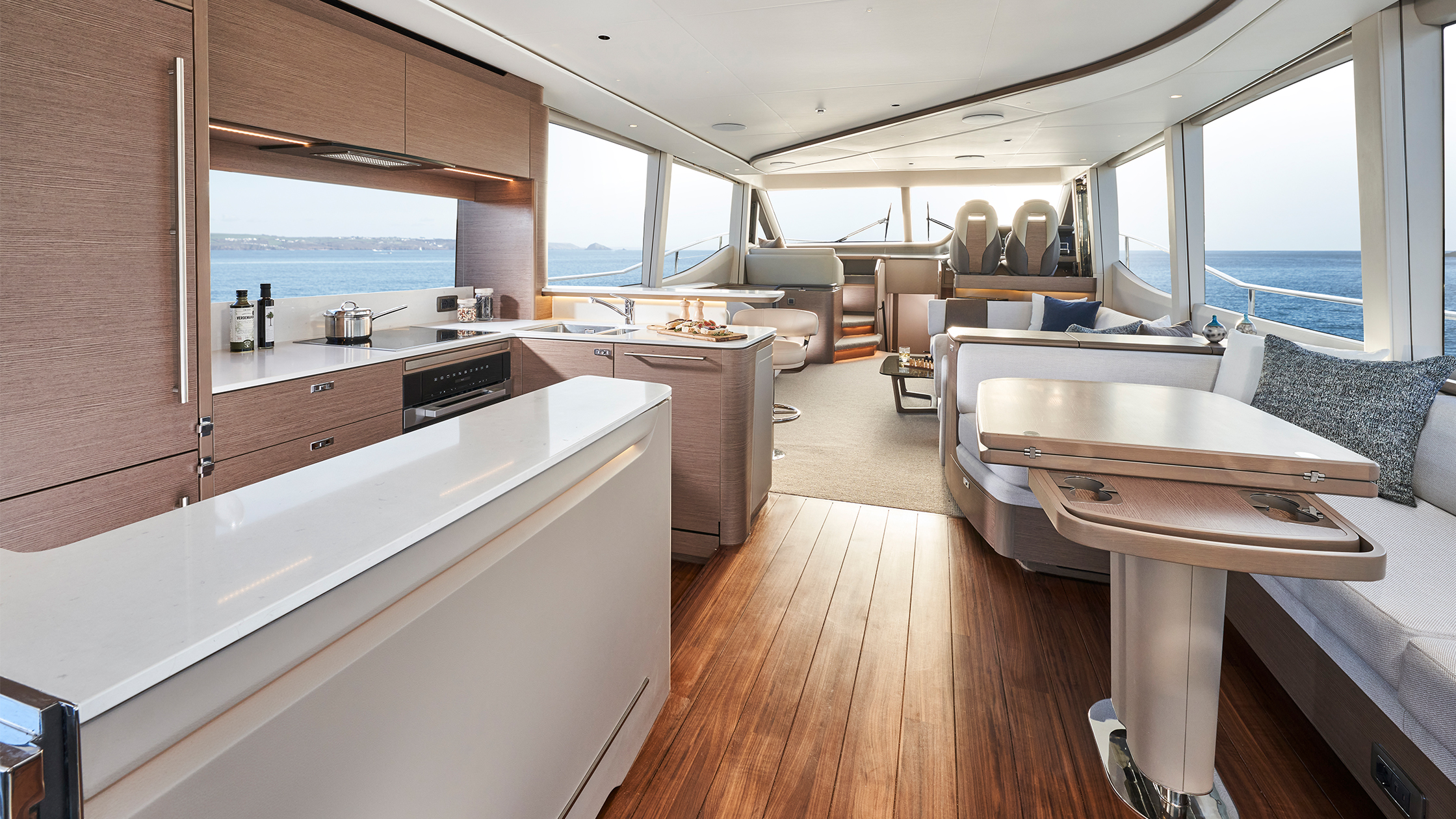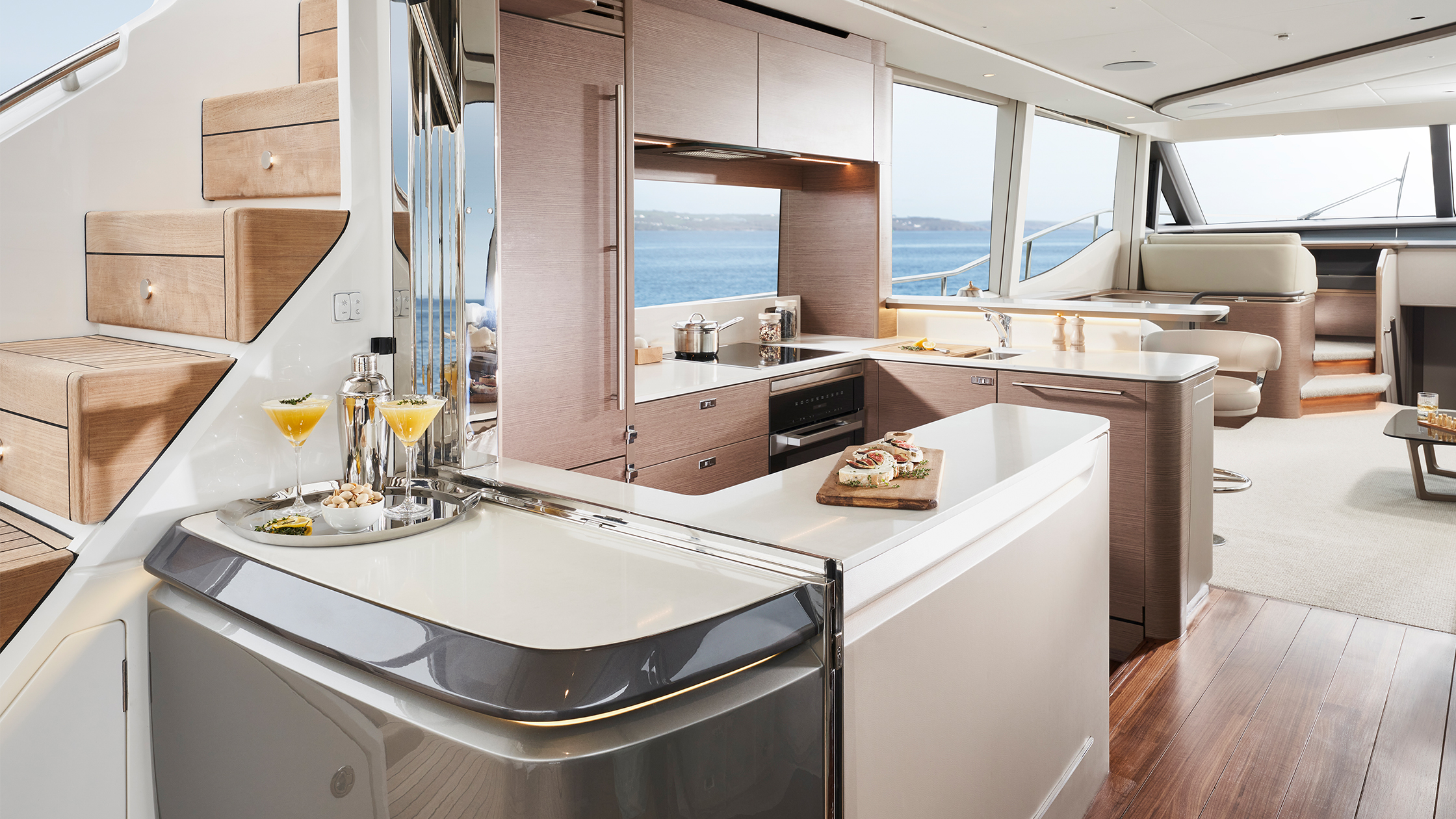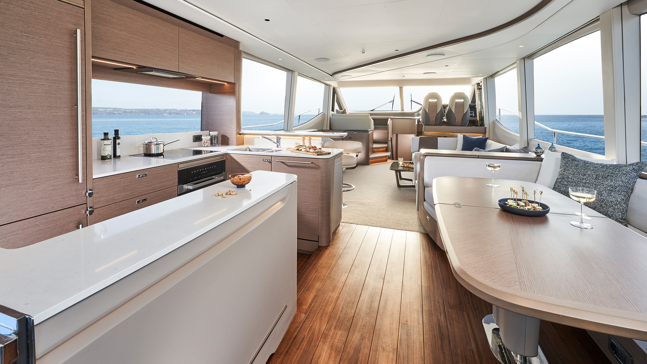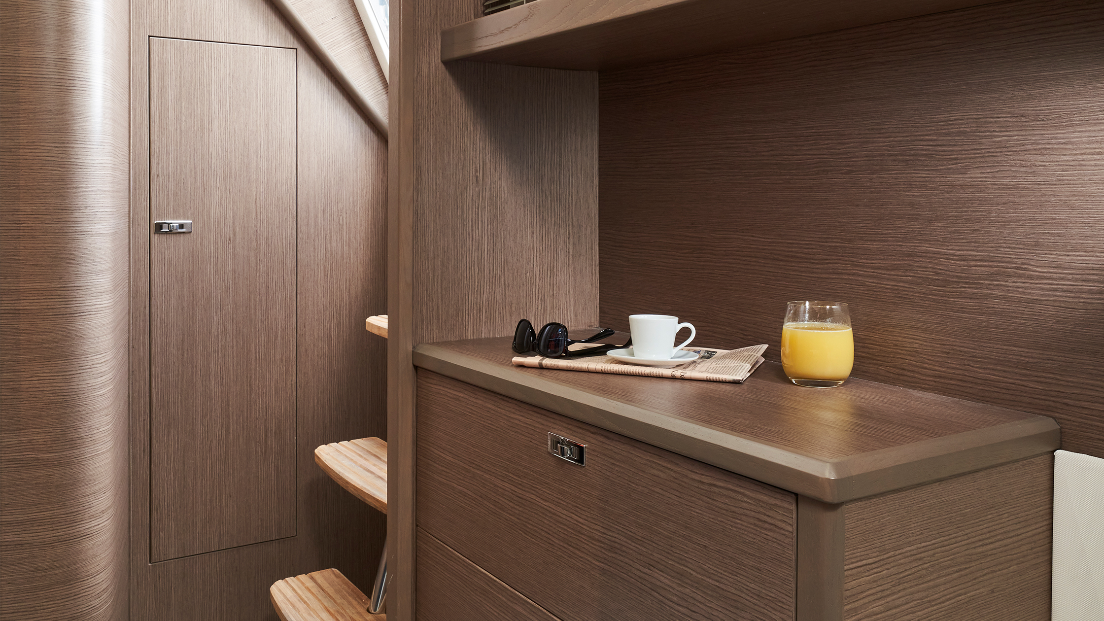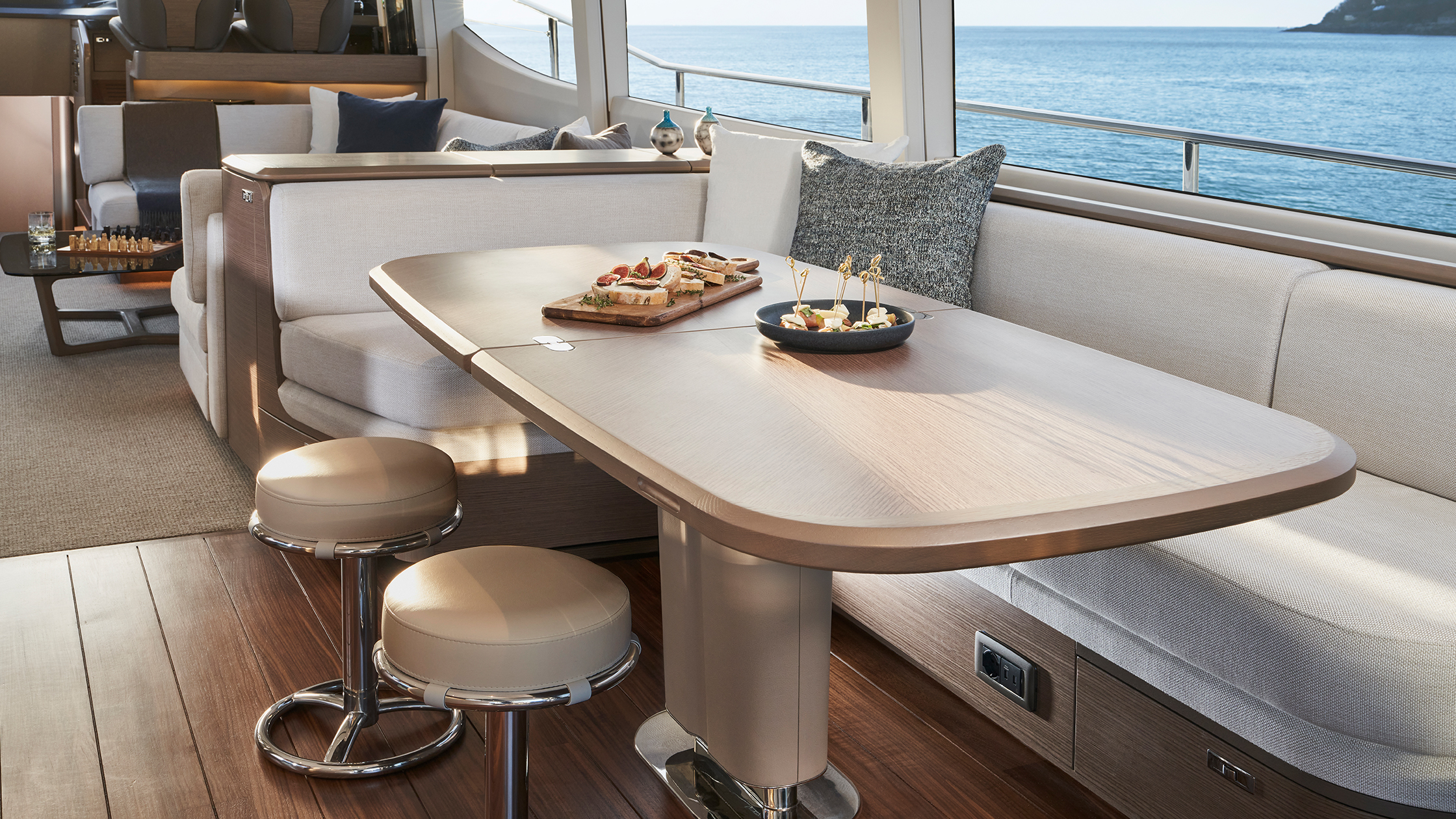 El Y72 aplica el lenguaje de diseño y la calidad superior que caracterizan a la Clase Y. Además, en este yate de 22,8 metros predomina el refinamiento gracias a unas superficies elegantes que cubren cada espacio para crear una estética moderna y despejada.
