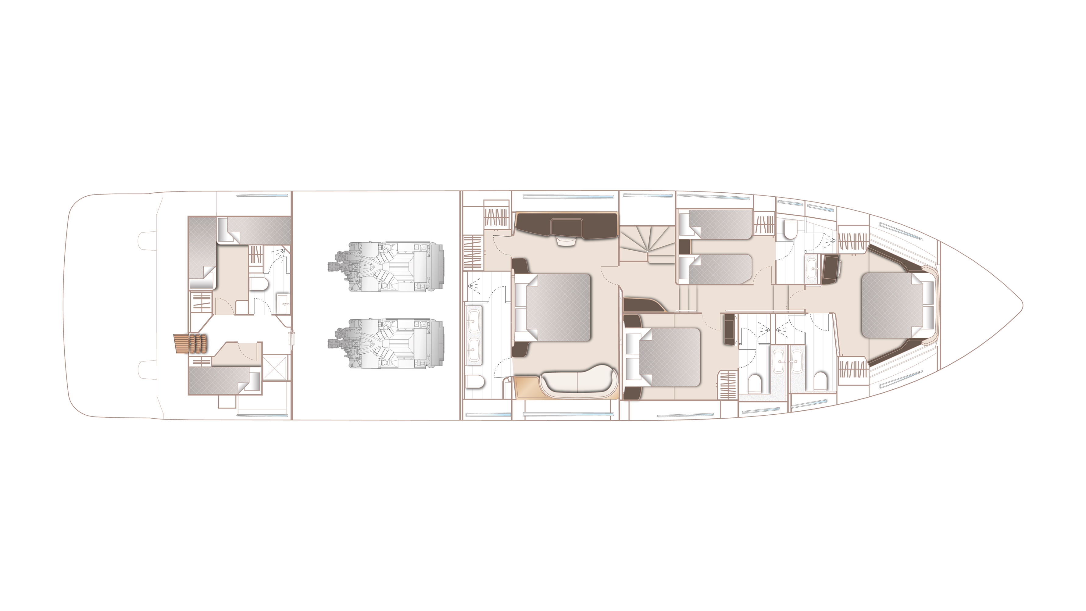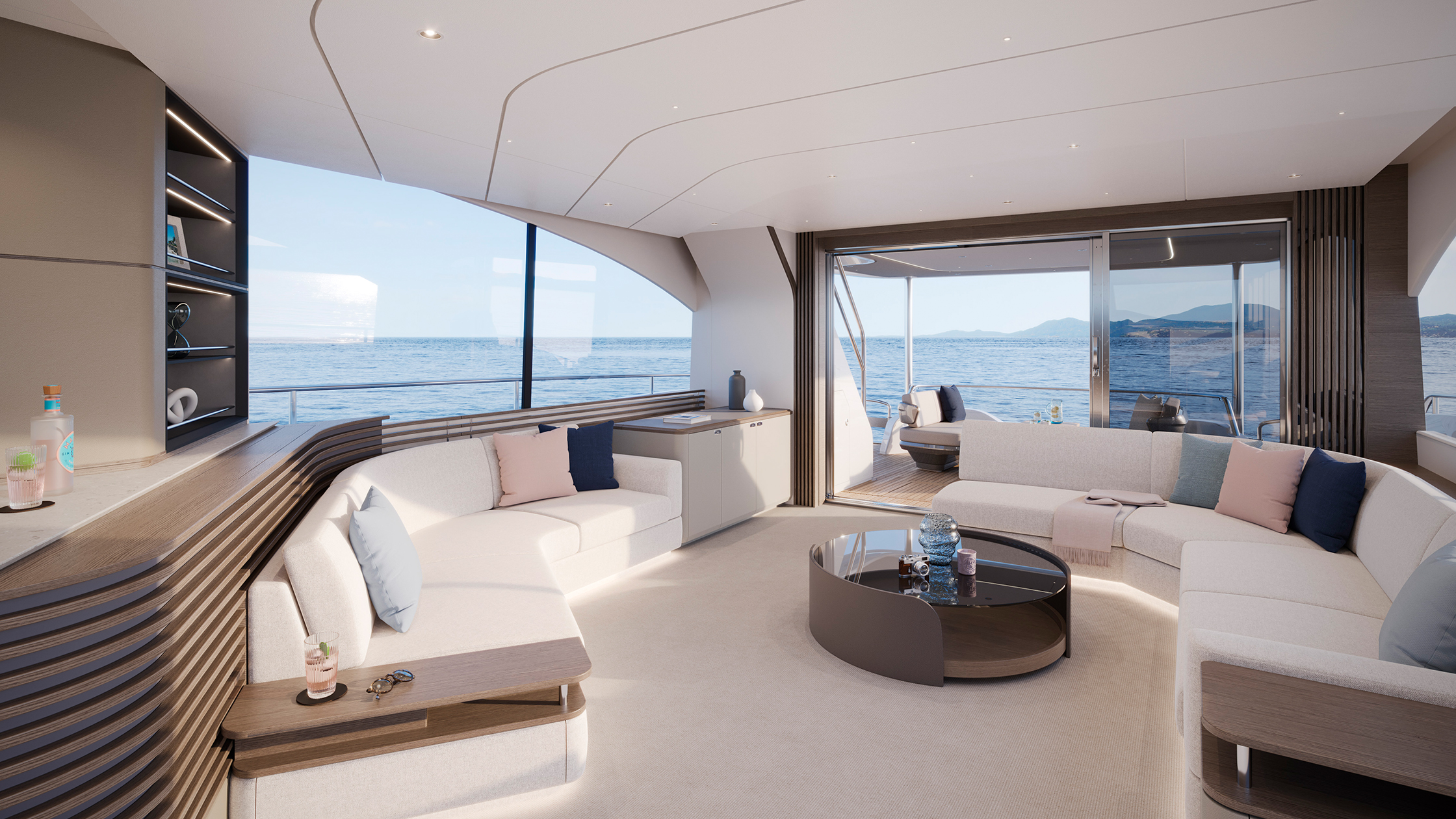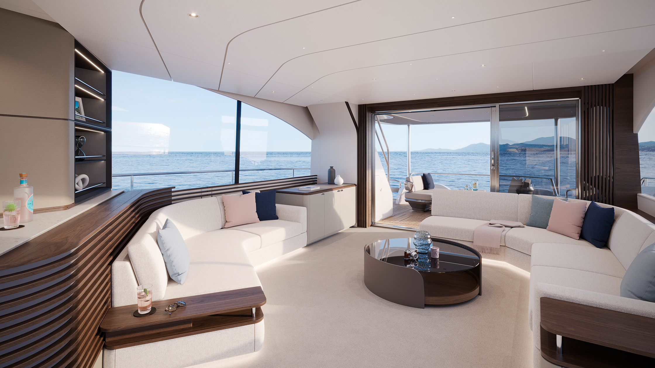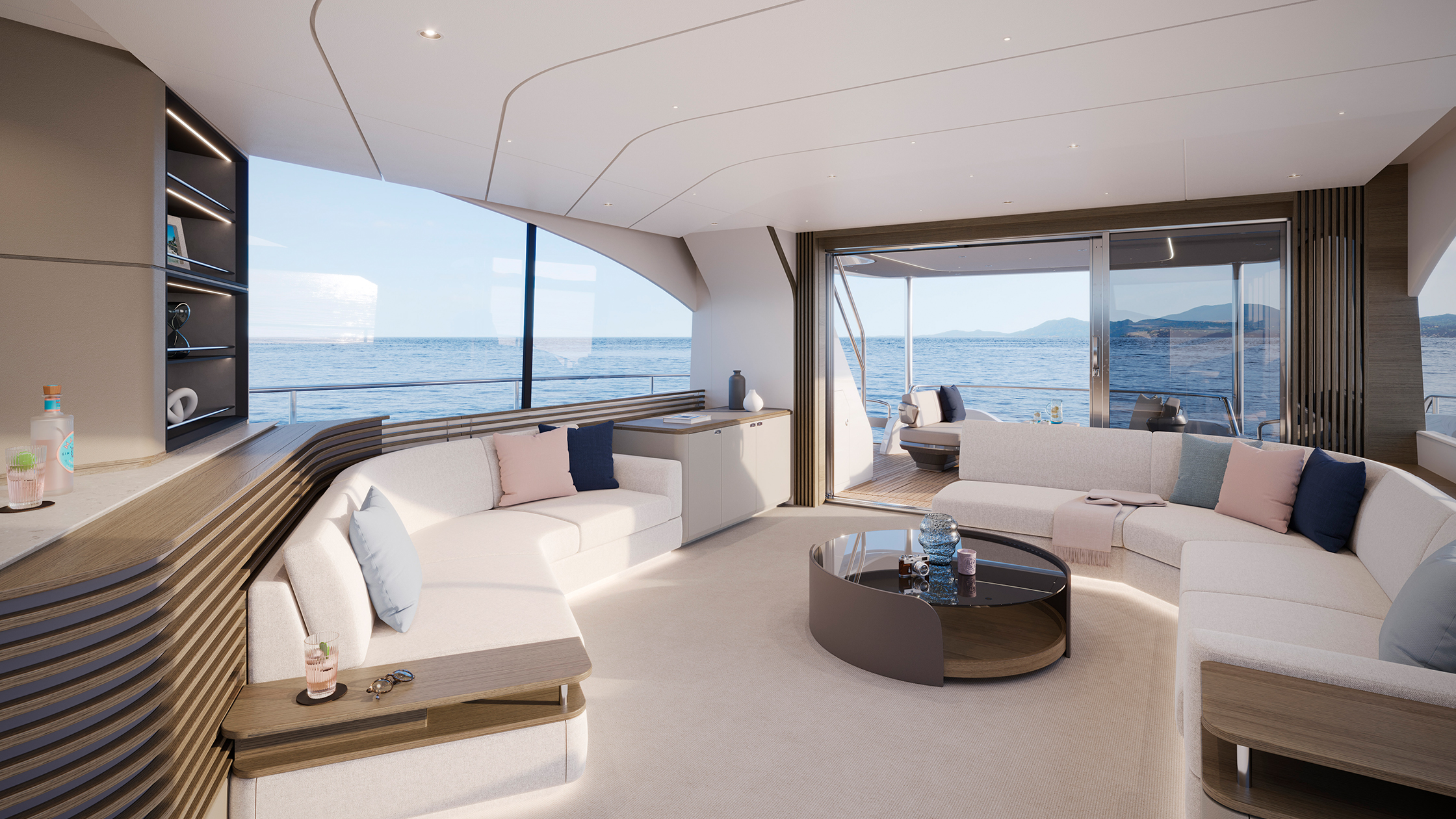 La cubierta principal ofrece un flujo continuo desde la bañera hasta el casco, con amplias ventanas en el salón que revelan unas increíbles vistas panorámicas. Para los propietarios que prefieran una experiencia más privada, hay disponibles divisiones opcionales para la cocina y el puente de mando.