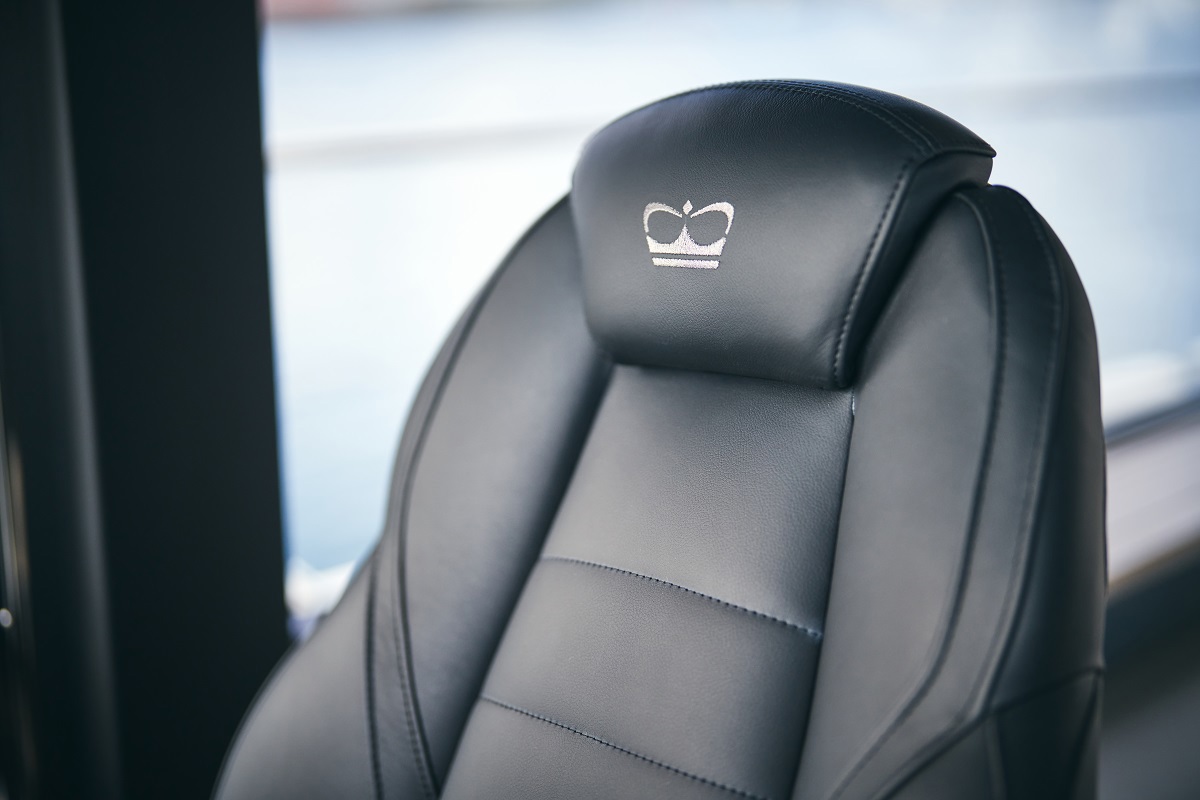 主甲板连续贯通全船,采用环绕式侧窗、滑动式船尾舱门、电控滑动式天窗,以及将水吧与舱内厨房相连的后甲板。